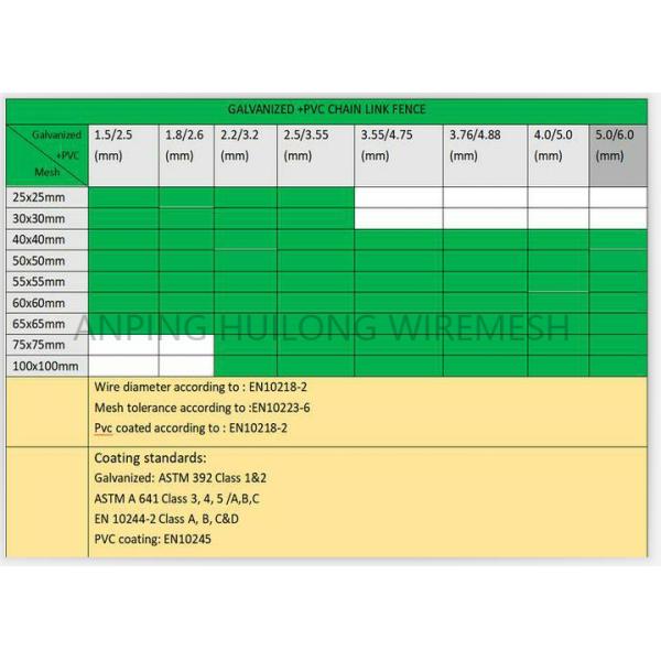 According to the different rusty resistance ability, Chain link fence coatings come in galvanized, aluminized, galfan, or galvinal versions. Vinyl/polymer coatings come in green, brown, and black. If you need a custom color, ask us about creating a custom order and we’ll do our best to accommodate, although not every color is possible.